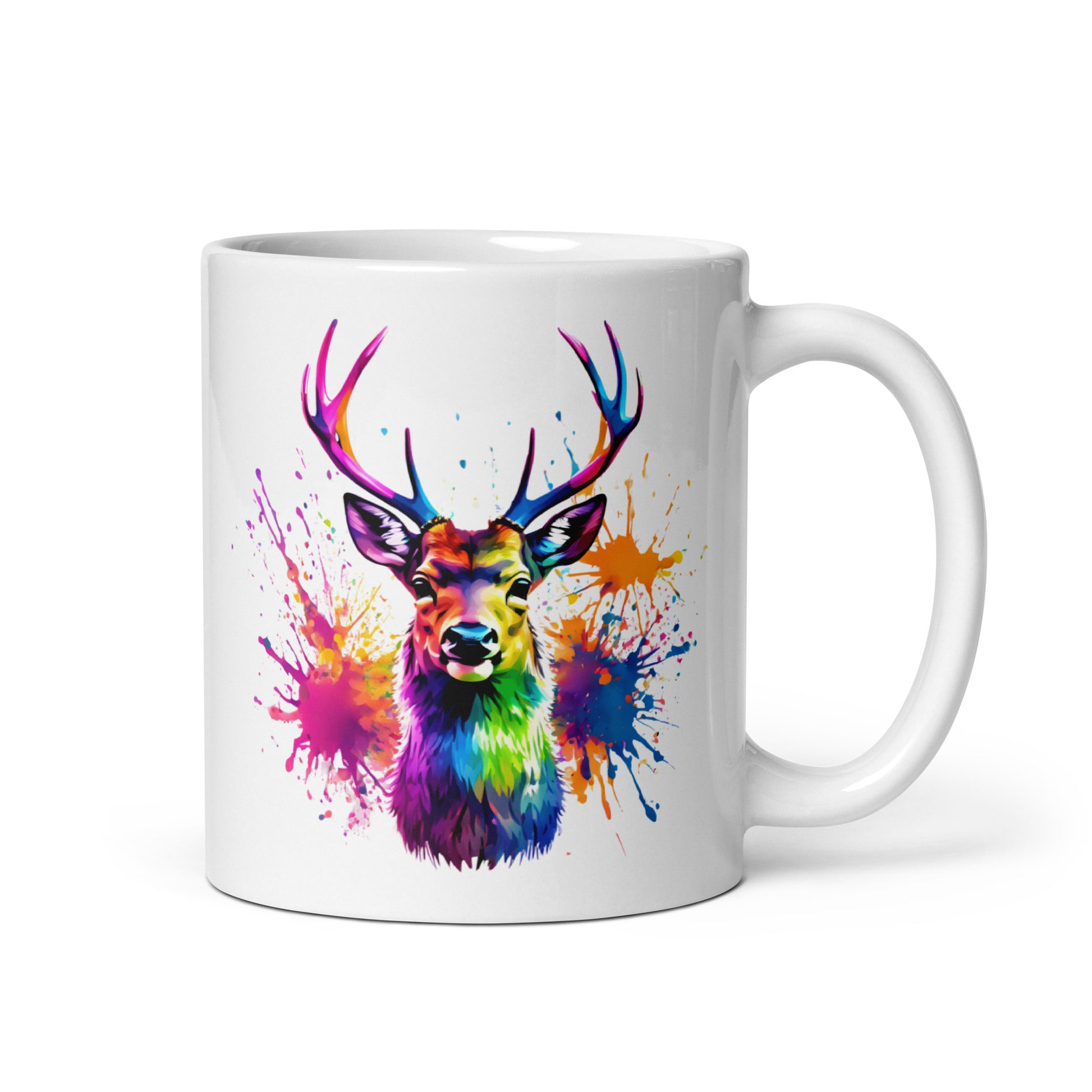 Hirsch im Farbexplosion Stil auf weißer Tasse (320 ml)