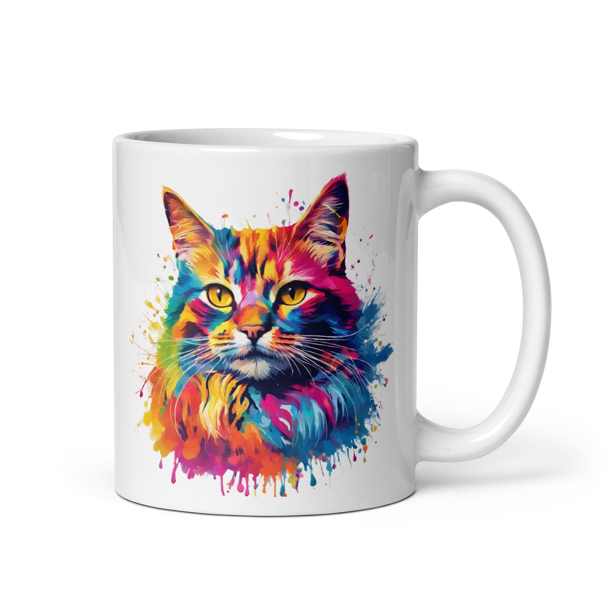 Katze im Farbexplosion Stil, auf weißer Tasse, 320 ml