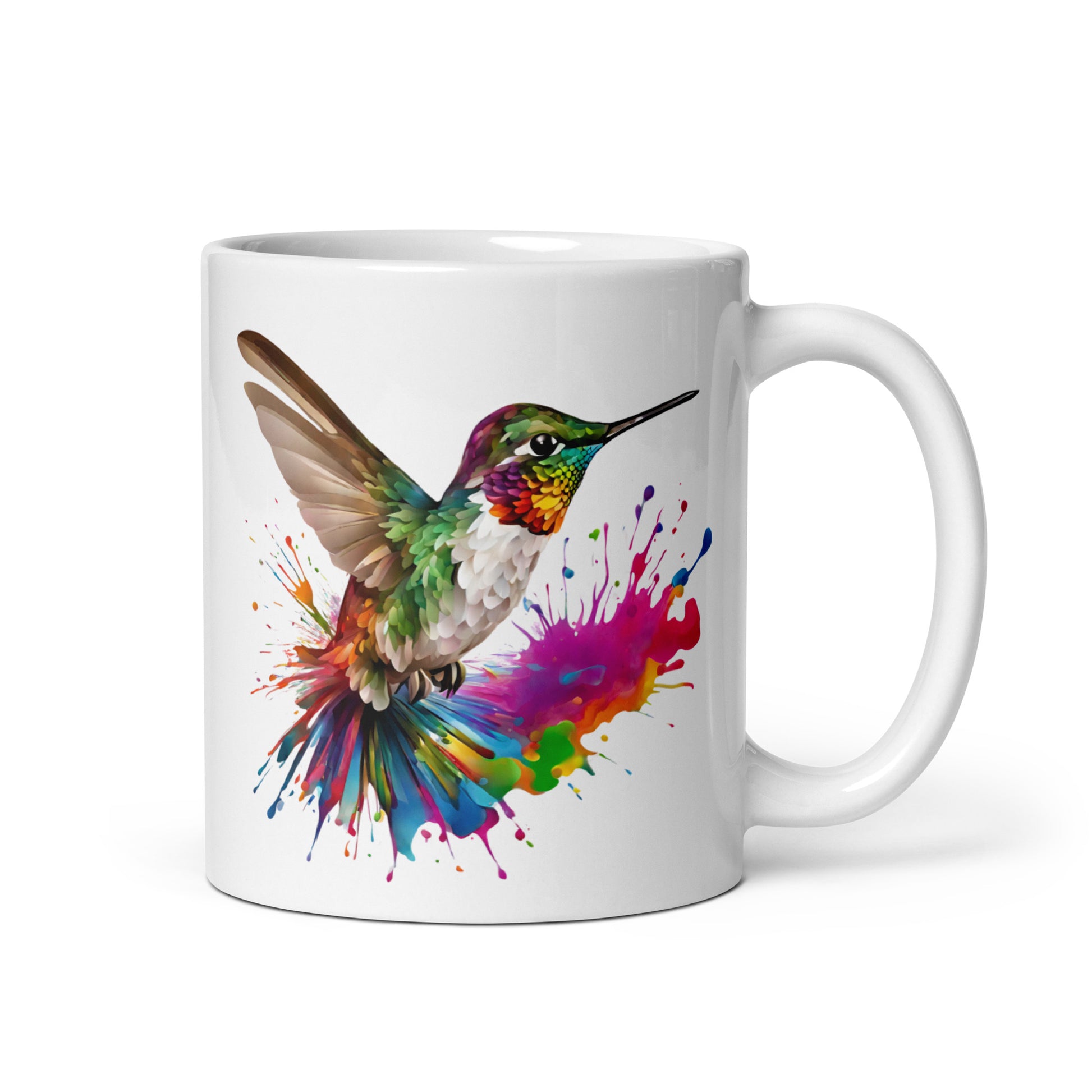 Kolibri im Farbexplosion Stil auf weißer Tasse (320 ml)