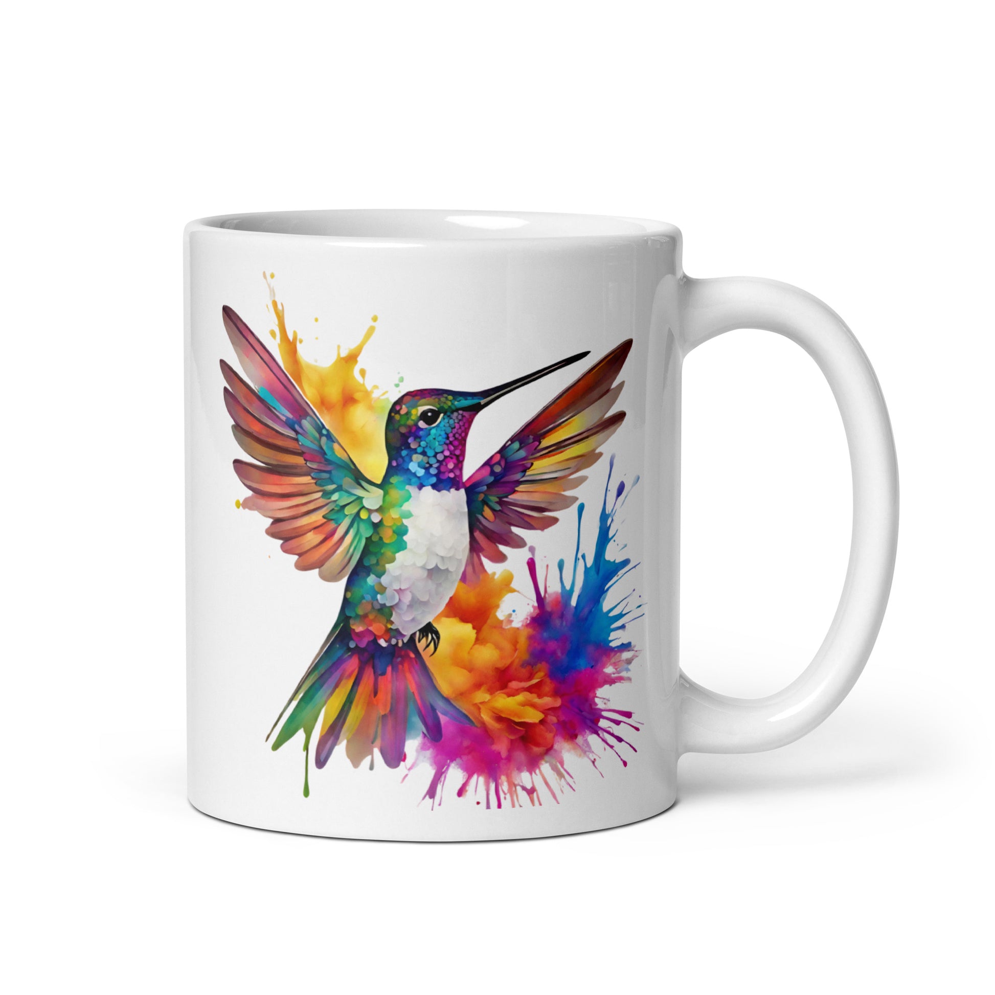 Kolibri im Farbexplosion Stil auf weißer Tasse (320 ml)
