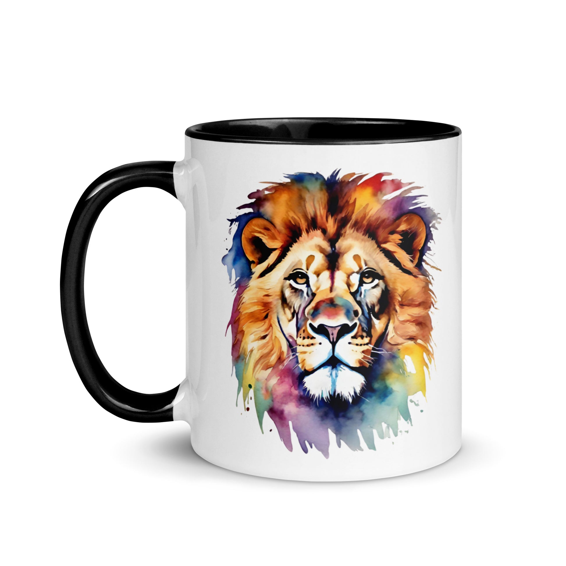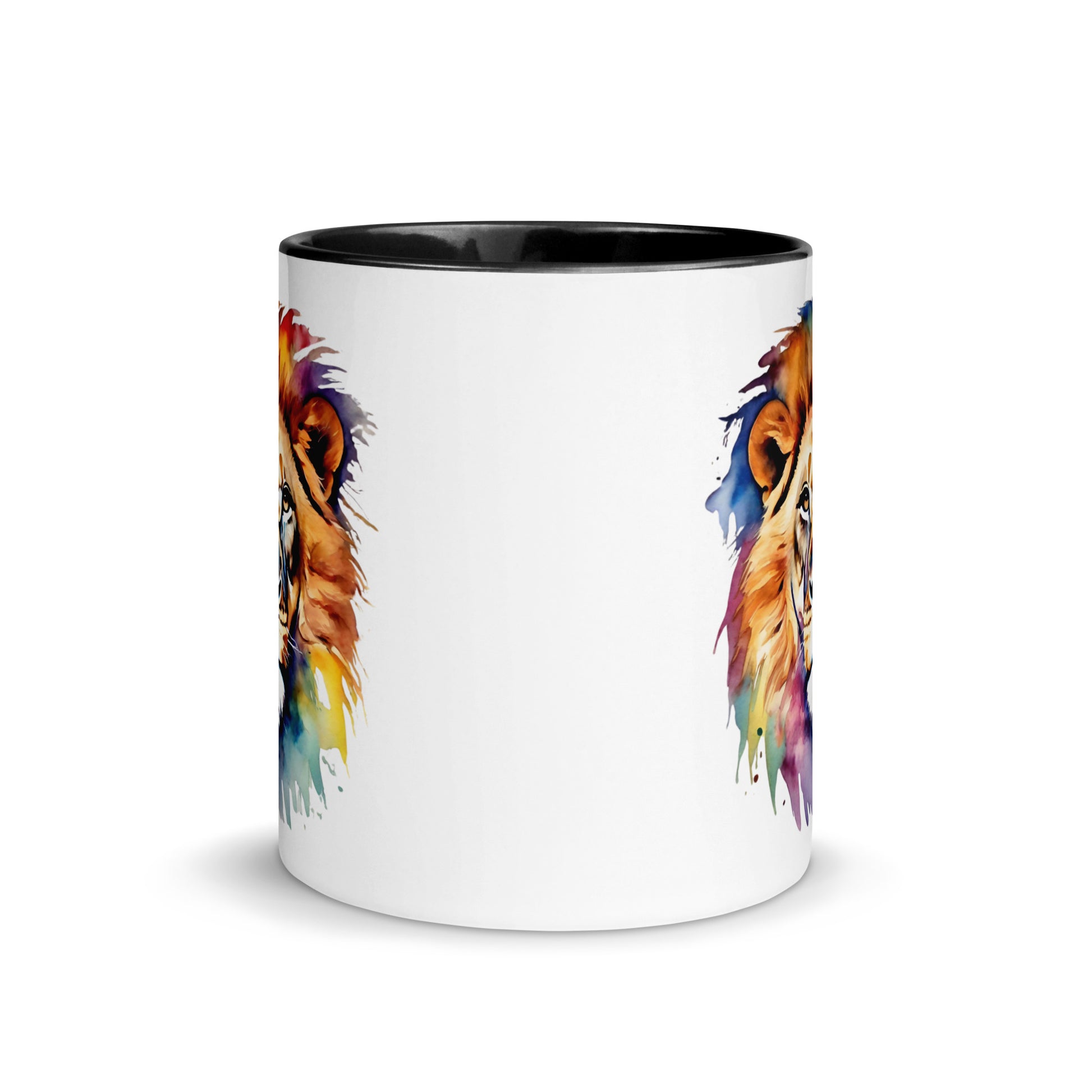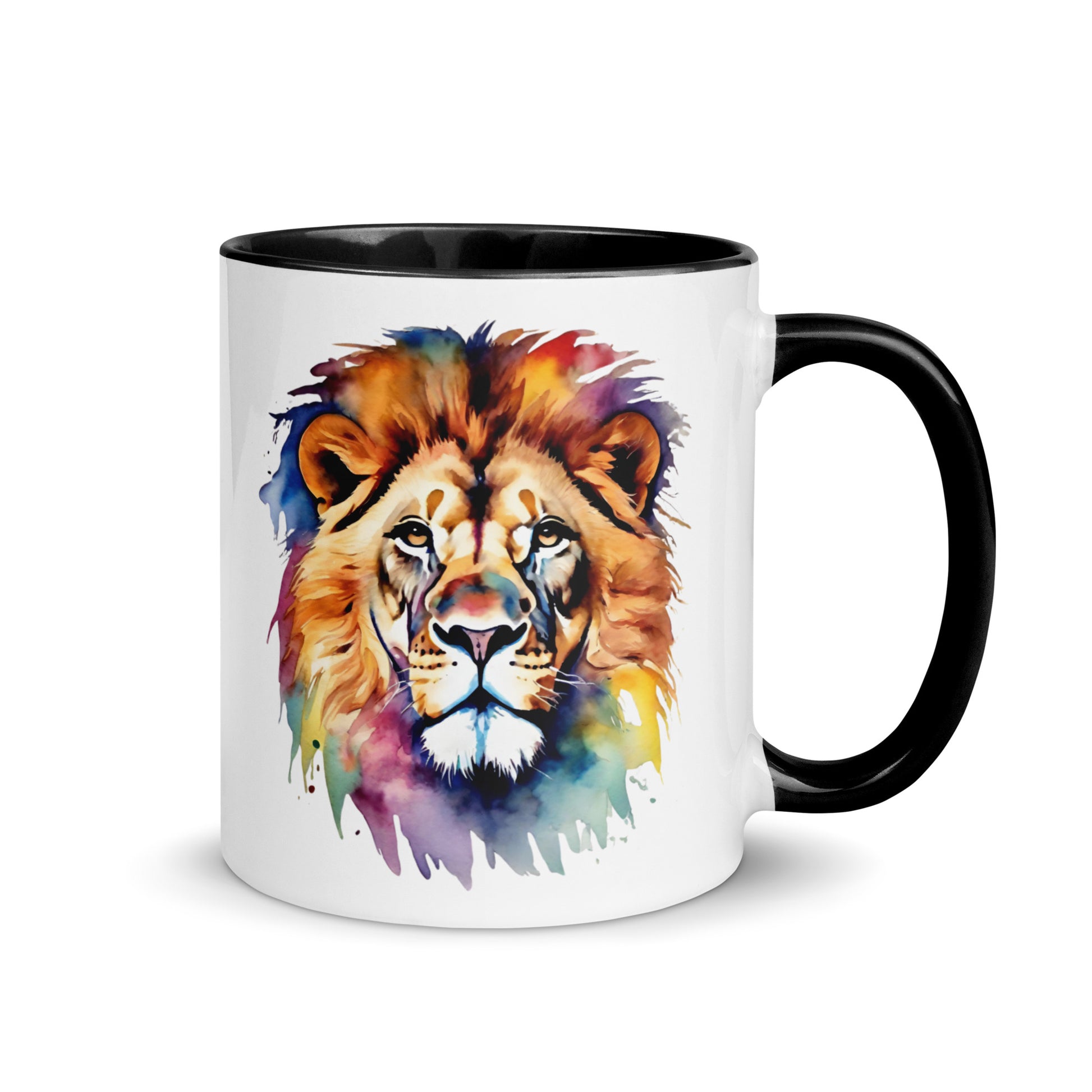 Löwe im Farbexplosion Stil, Tasse mit schwarzer Innenseite und Griff