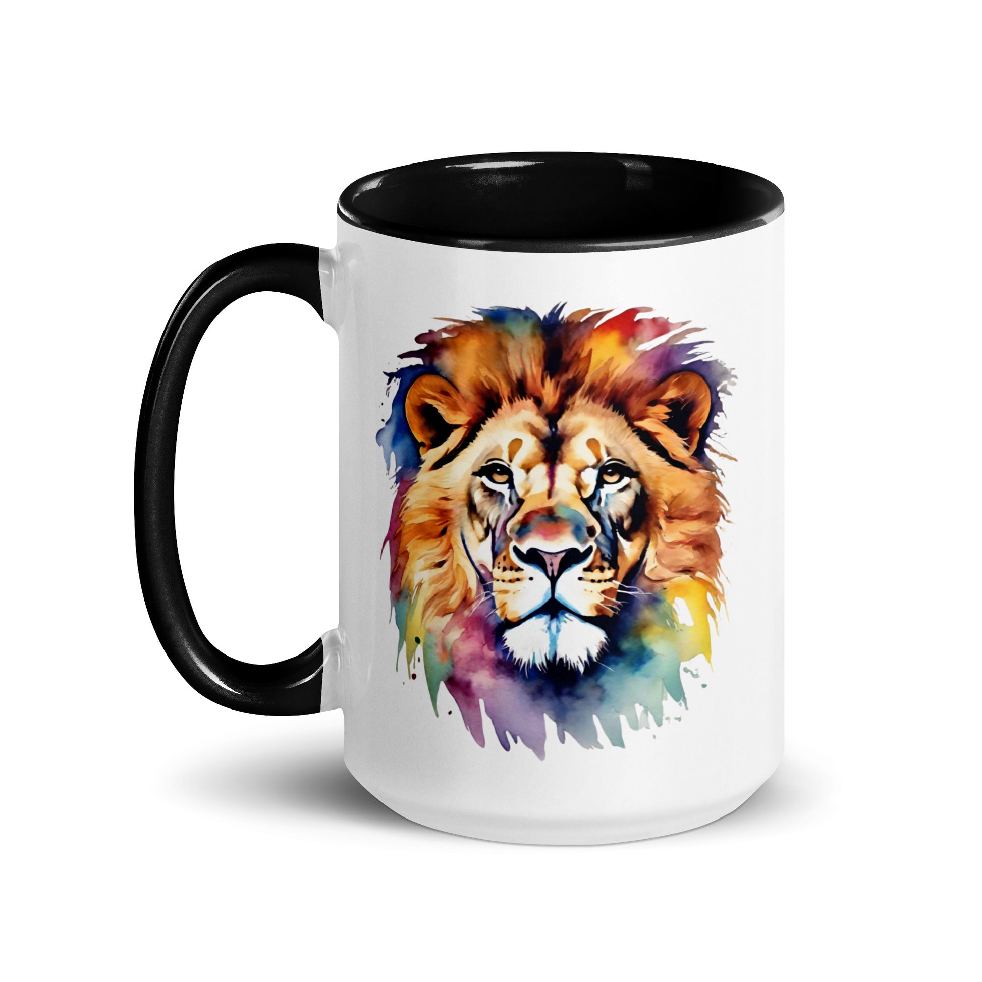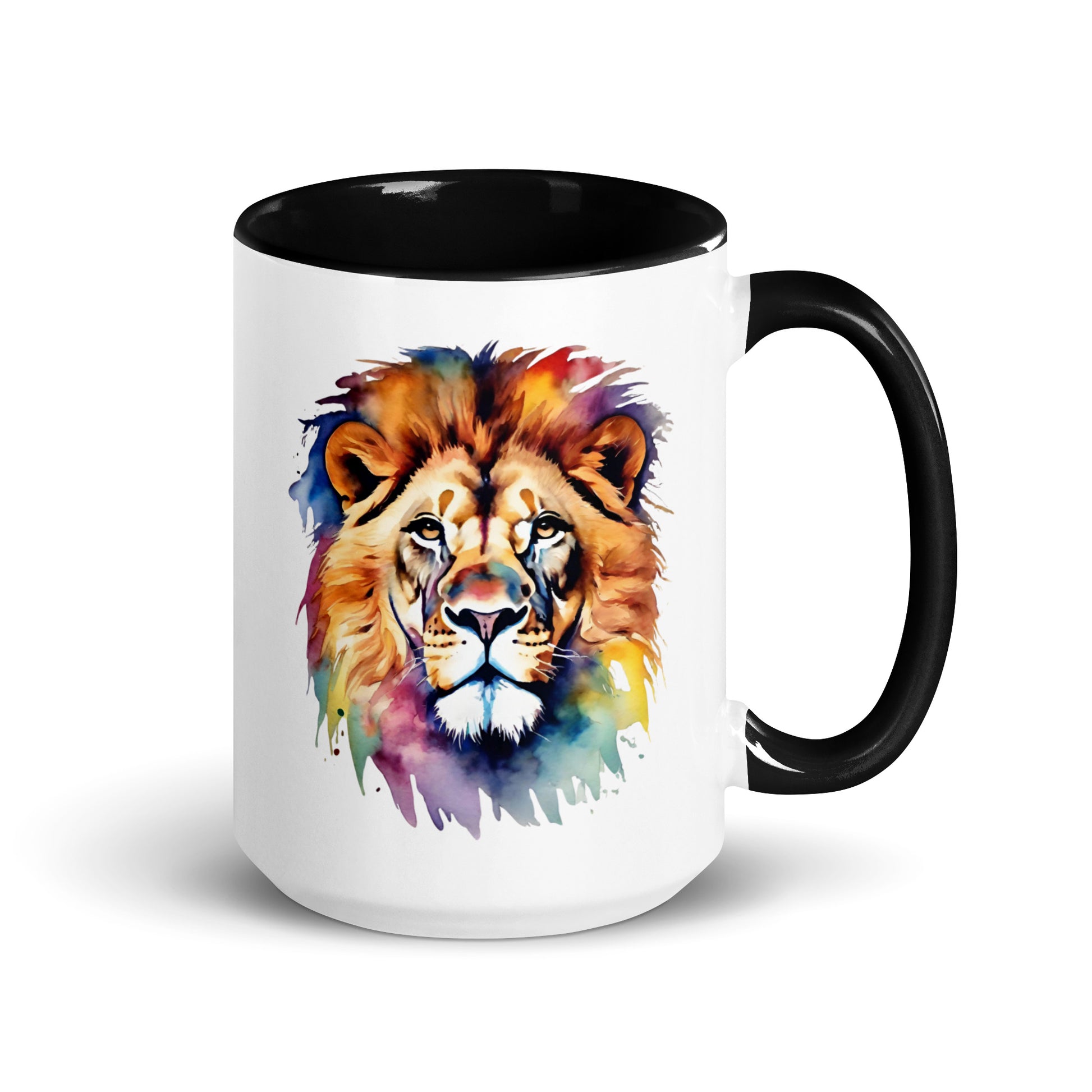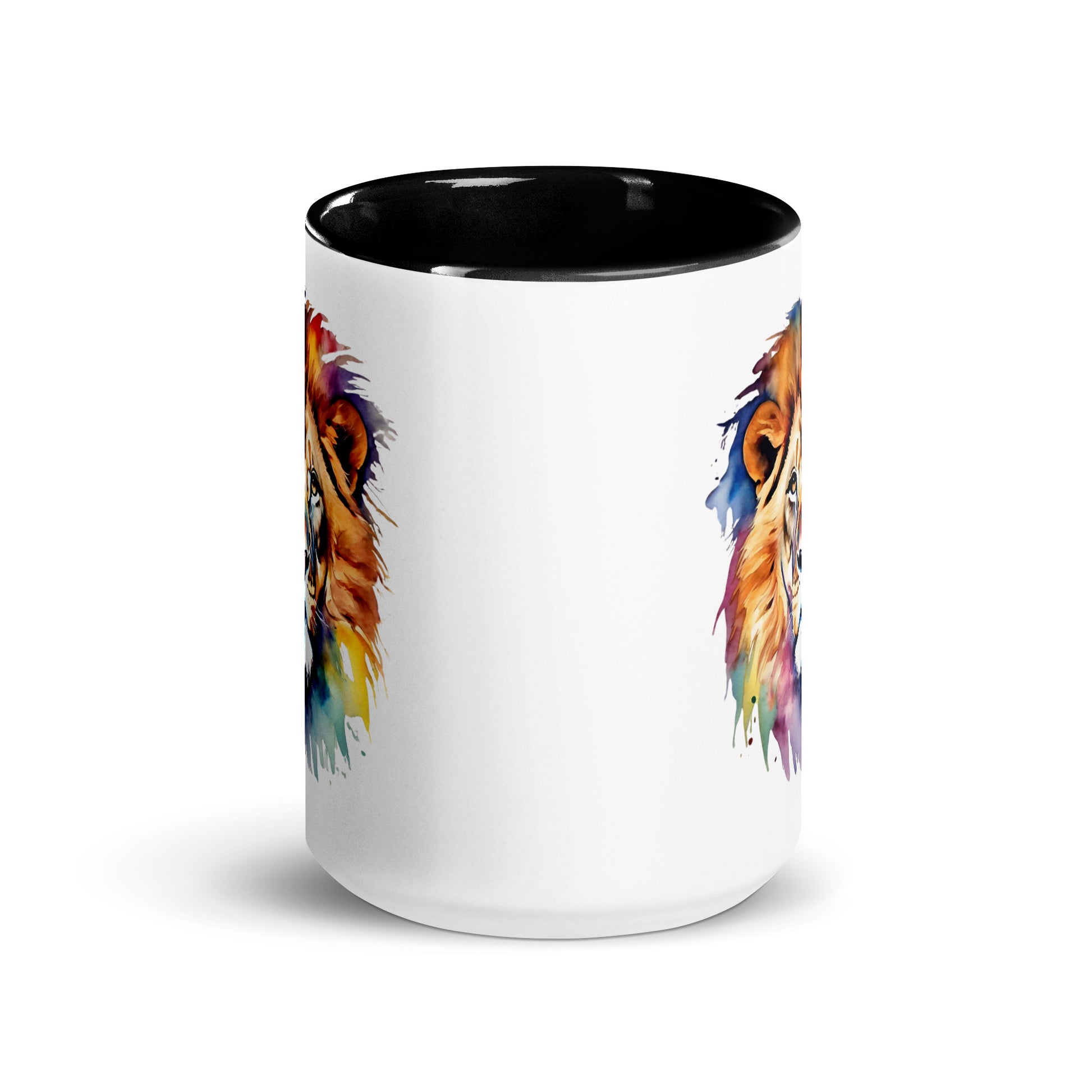 Löwe im Farbexplosion Stil, Tasse mit schwarzer Innenseite und Griff