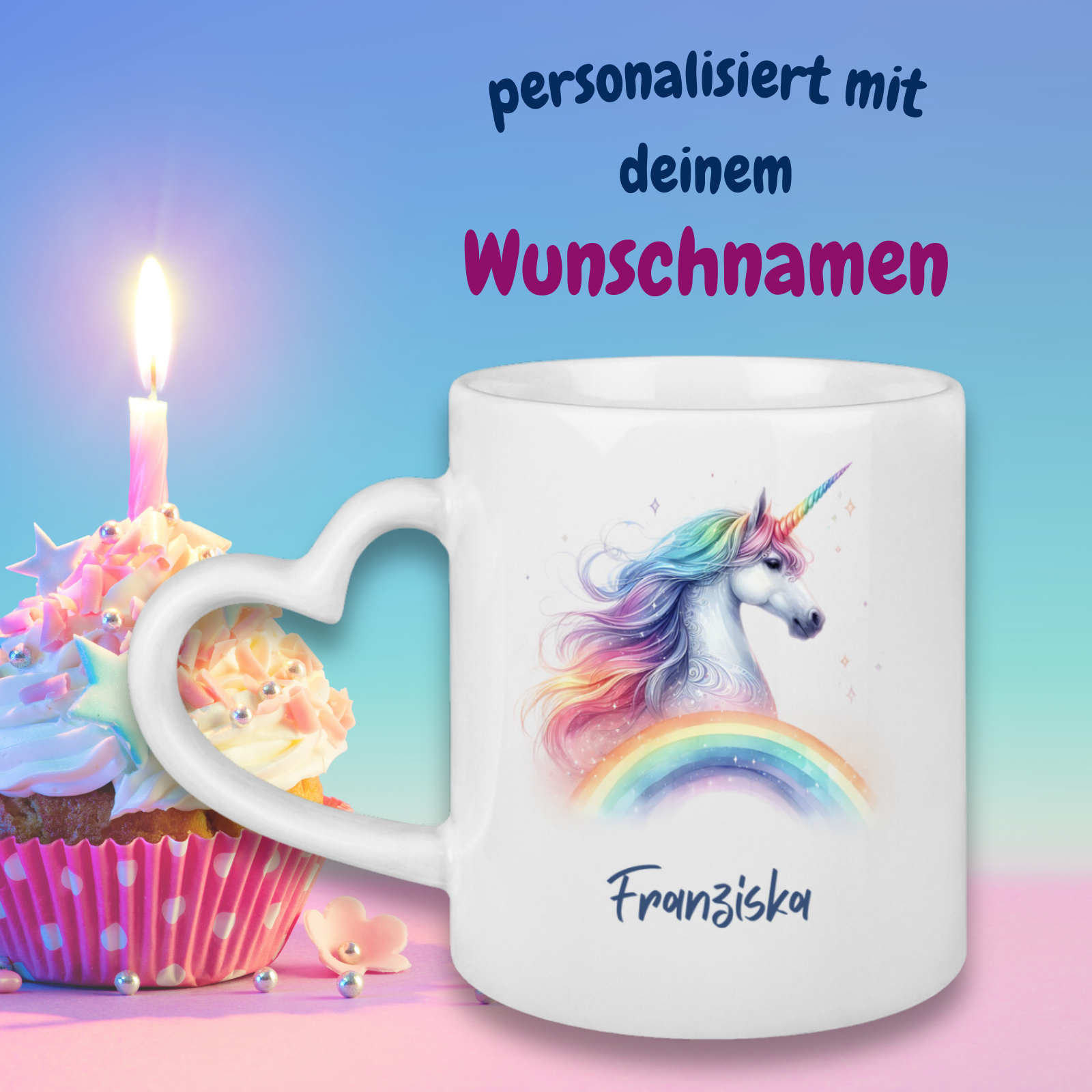 Tasse Herzgriff Einhorn personalisiert mit Wunschname Geschenk Geburtstag