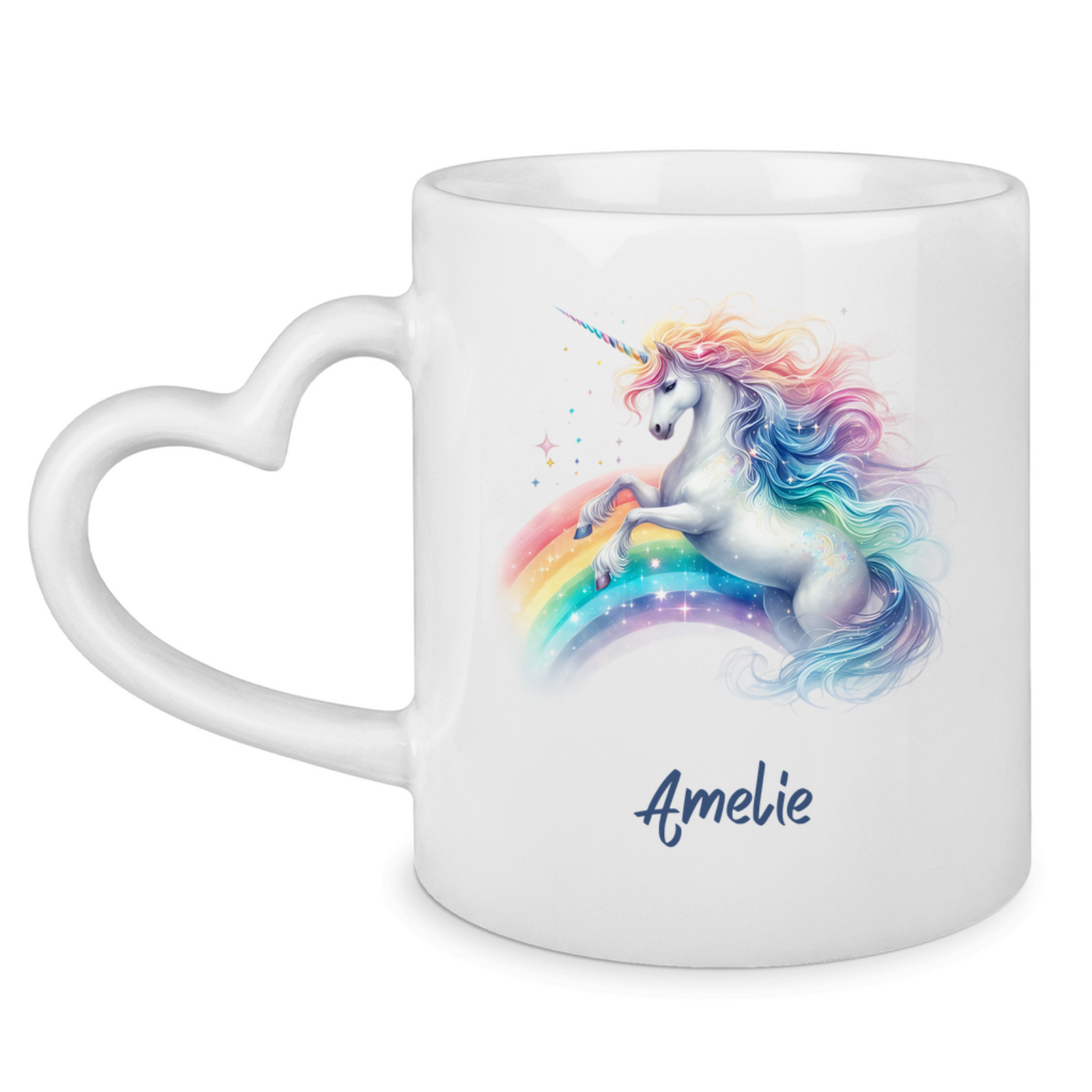 Tasse Herzgriff Einhorn personalisiert mit Wunschname Geschenk Geburtstag