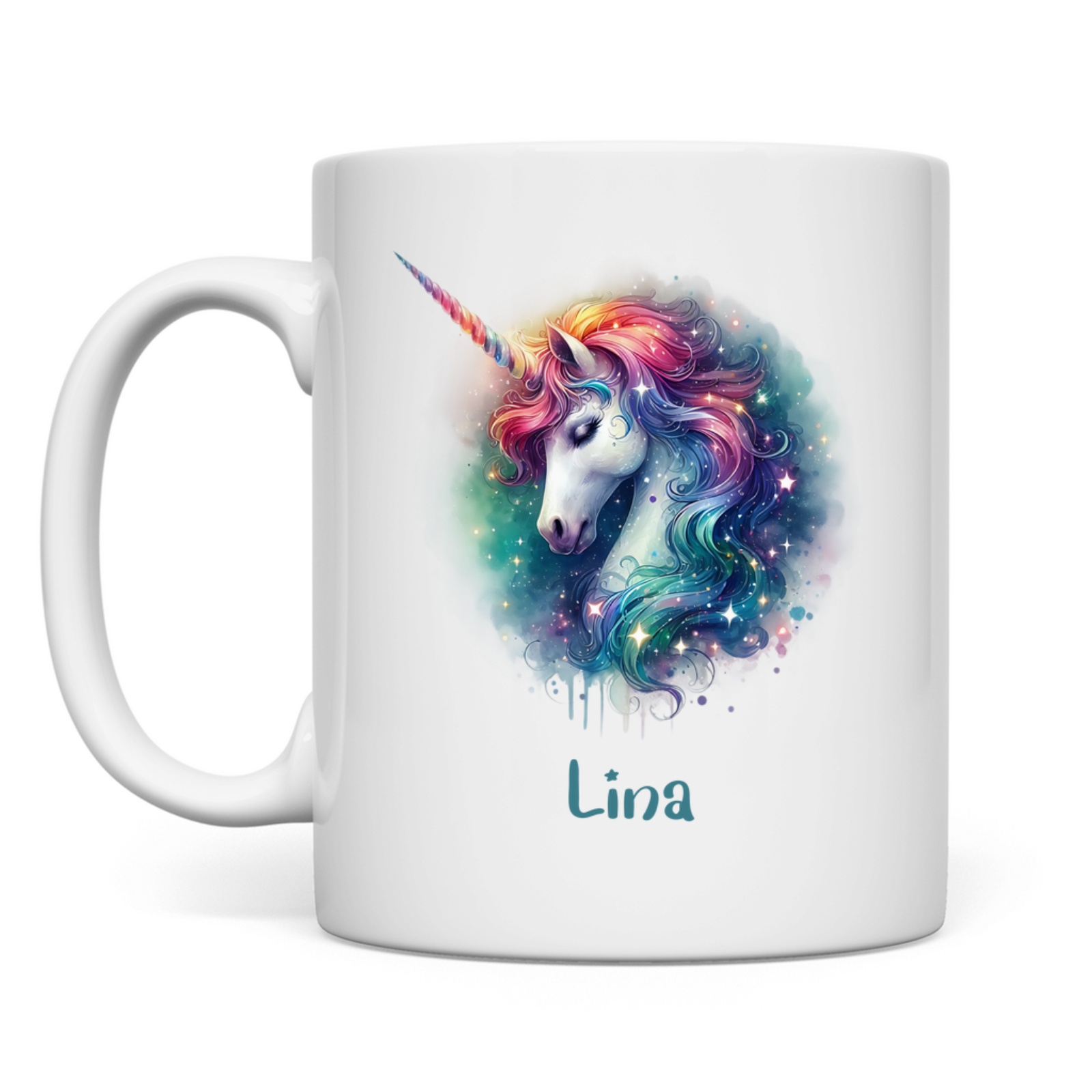 Tasse weiß Einhorn personalisiert mit Wunschname Geschenk Geburtstag